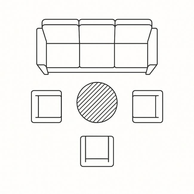 Option 1 gives a luxurious, cosy impression, best paired with a large rug that can accommodate an entire sofa and chair set.